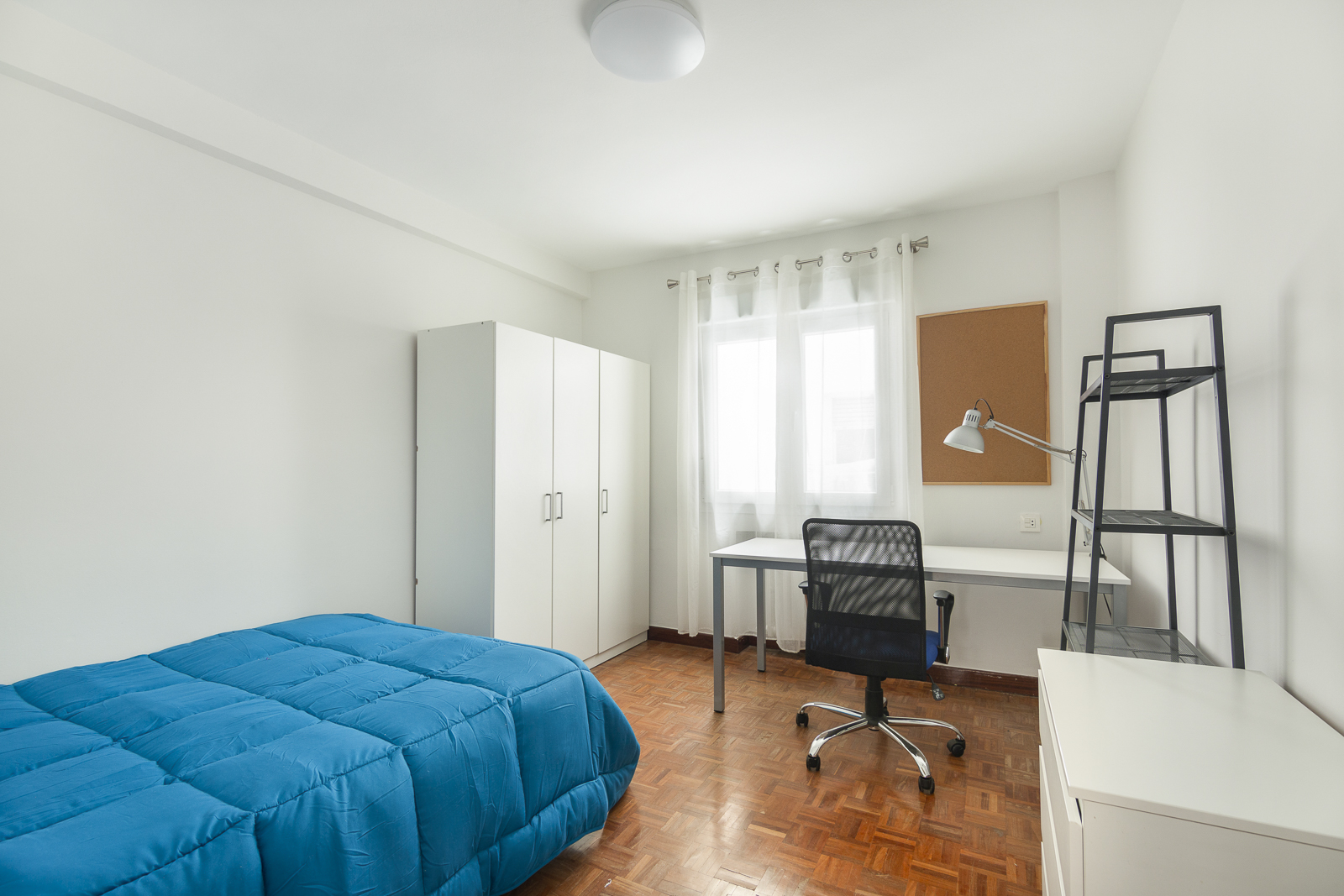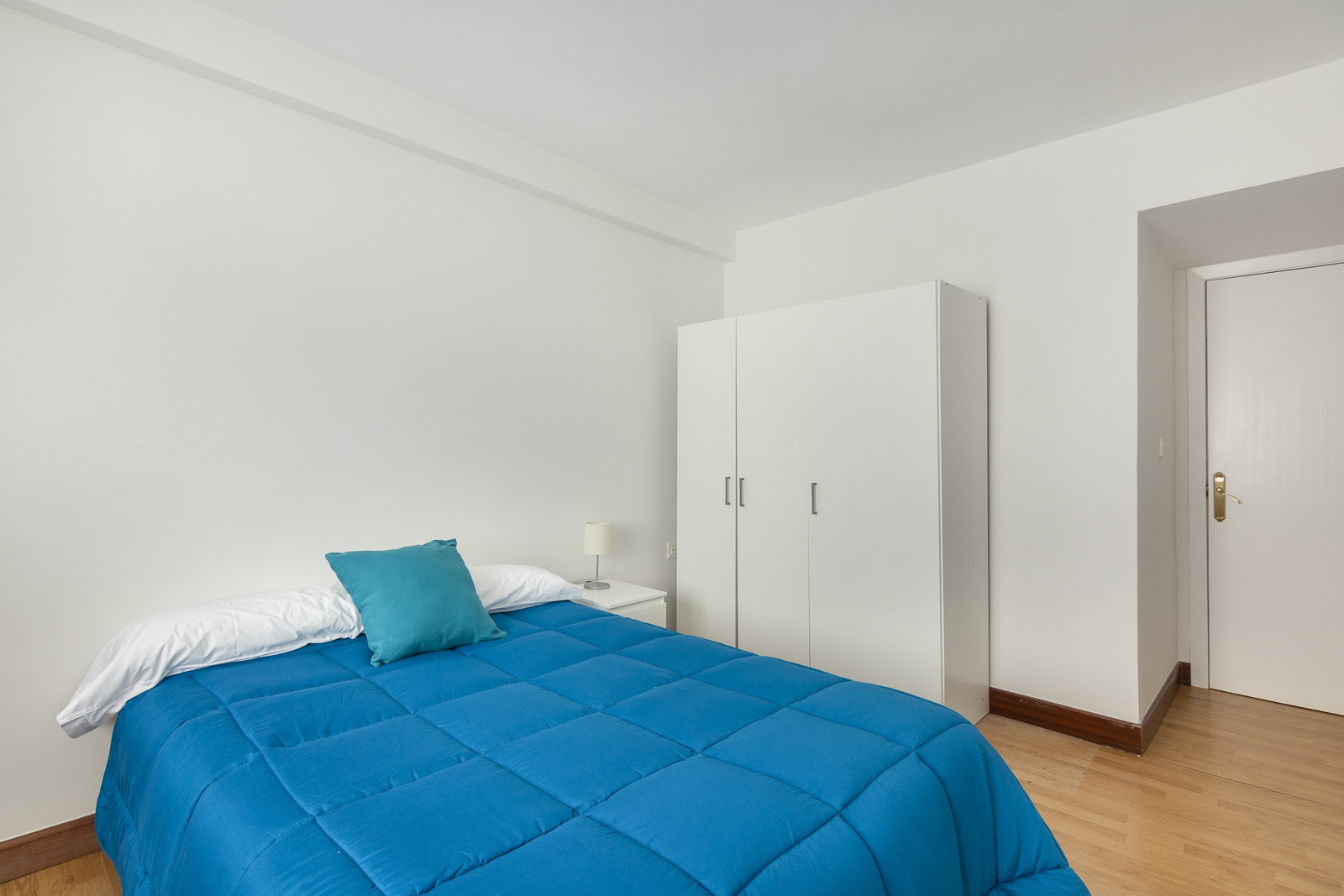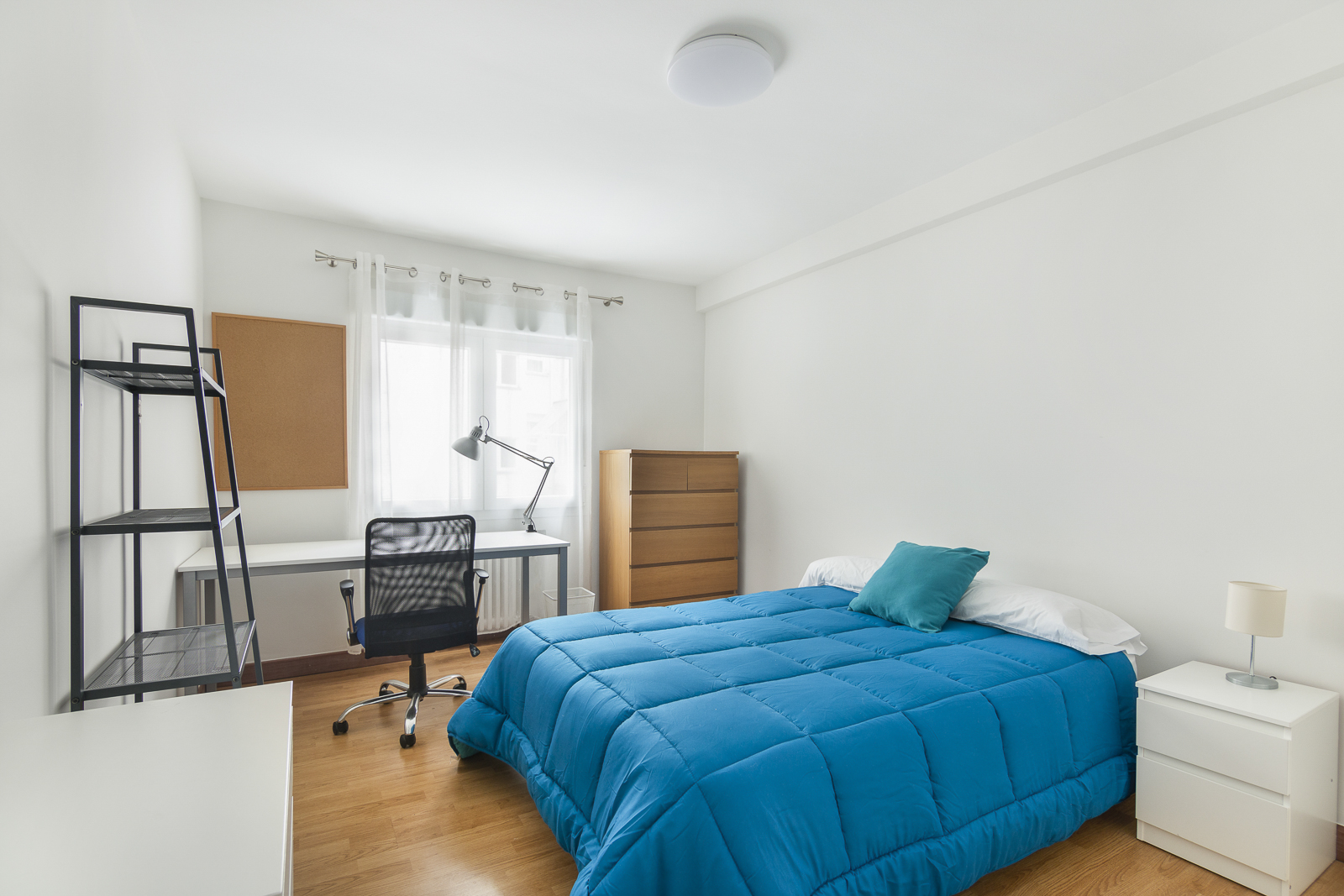 Todas las habitaciones disponen de mobiliario perfectamente adaptado al estudio: mesa grande de estudio, silla ergonómica, flexo con bombilla led de gran luminosidad, corcho para apuntes, estantería para almacenaje de libros, y también un armario de tres puertas, una cómoda, mesita, y papelera. Dispone de dos camas dobles de 1,35cm y otra cama individual de 1,05cm. También proporcionamos ropa de cama y un juego de toallas.