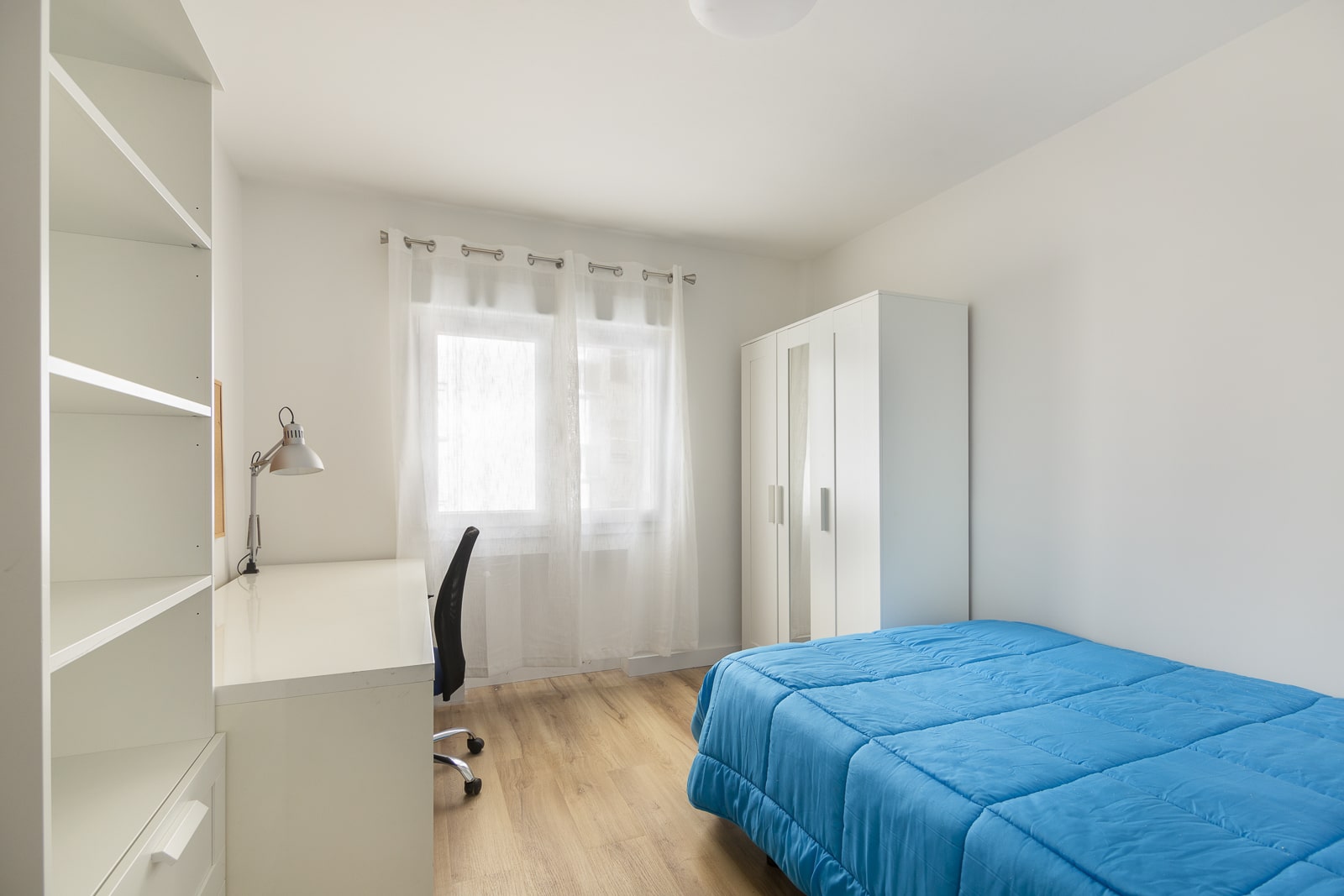 Todas las habitaciones disponen de mobiliario perfectamente adaptado al estudio: mesa grande de estudio, silla ergonómica, flexo con bombilla led de gran luminosidad, corcho para apuntes, estantería para almacenaje de libros, y también un armario de tres puertas, una cómoda, mesita, y papelera. Dispone de dos camas dobles de 1,35cm y otra cama individual de 1,05cm. También proporcionamos ropa de cama y un juego de toallas.
