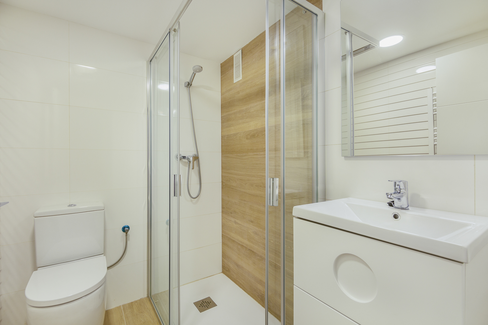 Los cuartos de baño están equipados con plato de ducha cerámico y mampara corredera, lavabo, wc, toallero calefactable y secador de pelo.