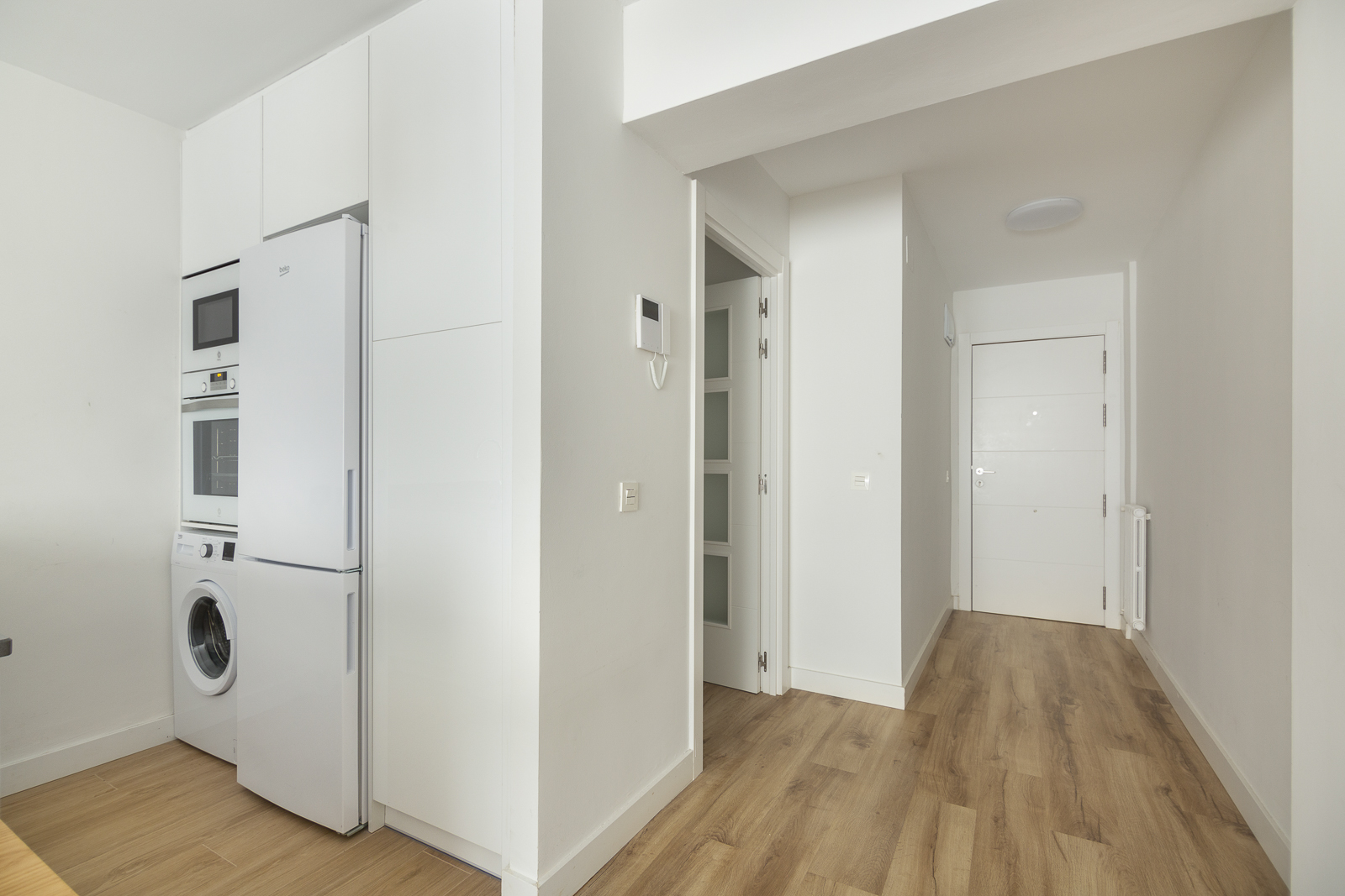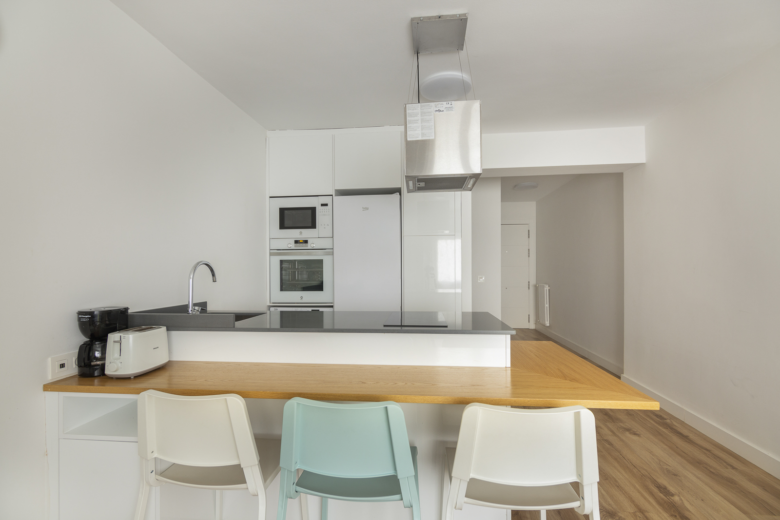 La cocina está equipada con un menaje básico del hogar, y cuenta con nevera, lavavajillas, lavadora, horno, microondas, campana extractora, vitrocerámica digital, cafetera y tostadora. En el salón, una smart tv de pantalla plana para los momentos de relax.
