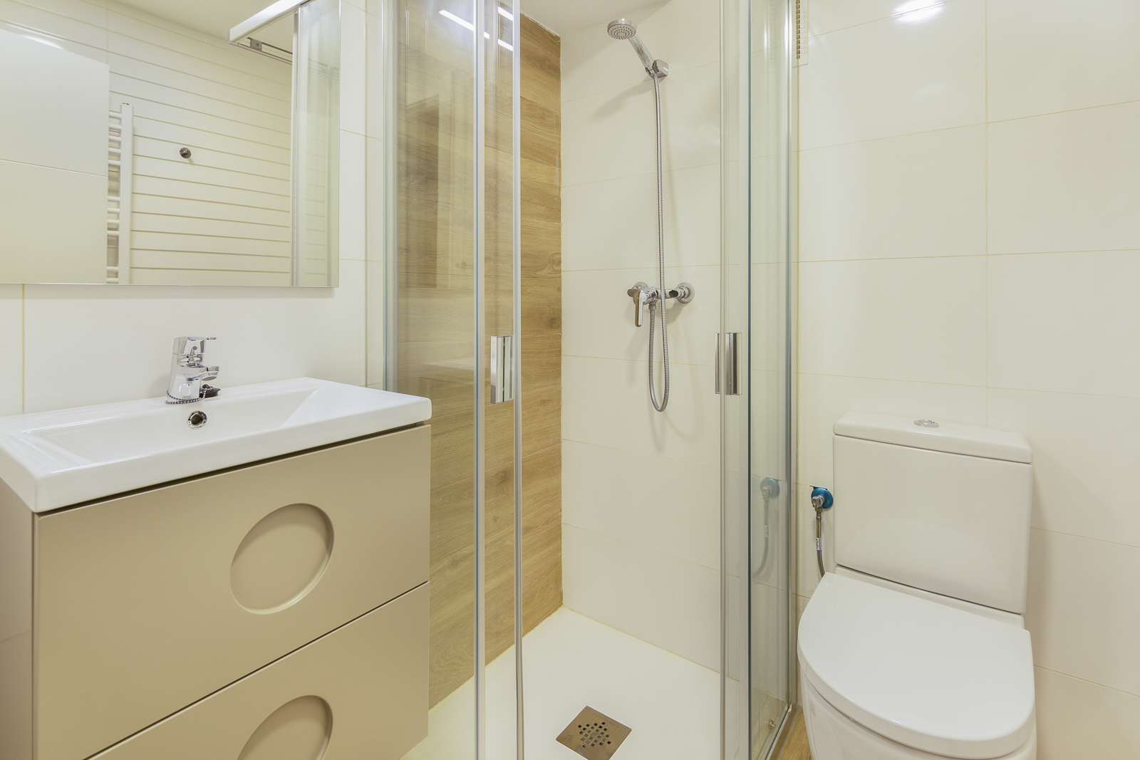 Los cuartos de baño están equipados con plato de ducha cerámico y mampara corredera, lavabo, wc, toallero calefactable y secador de pelo.