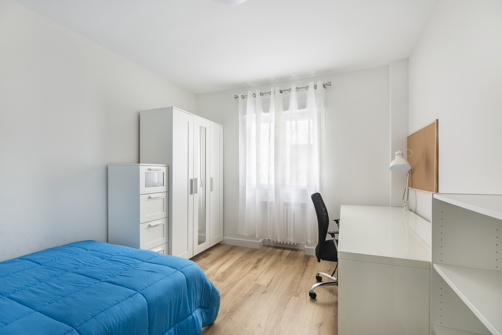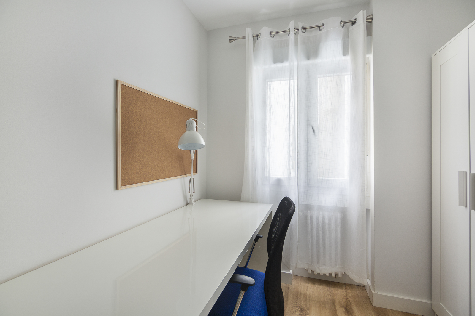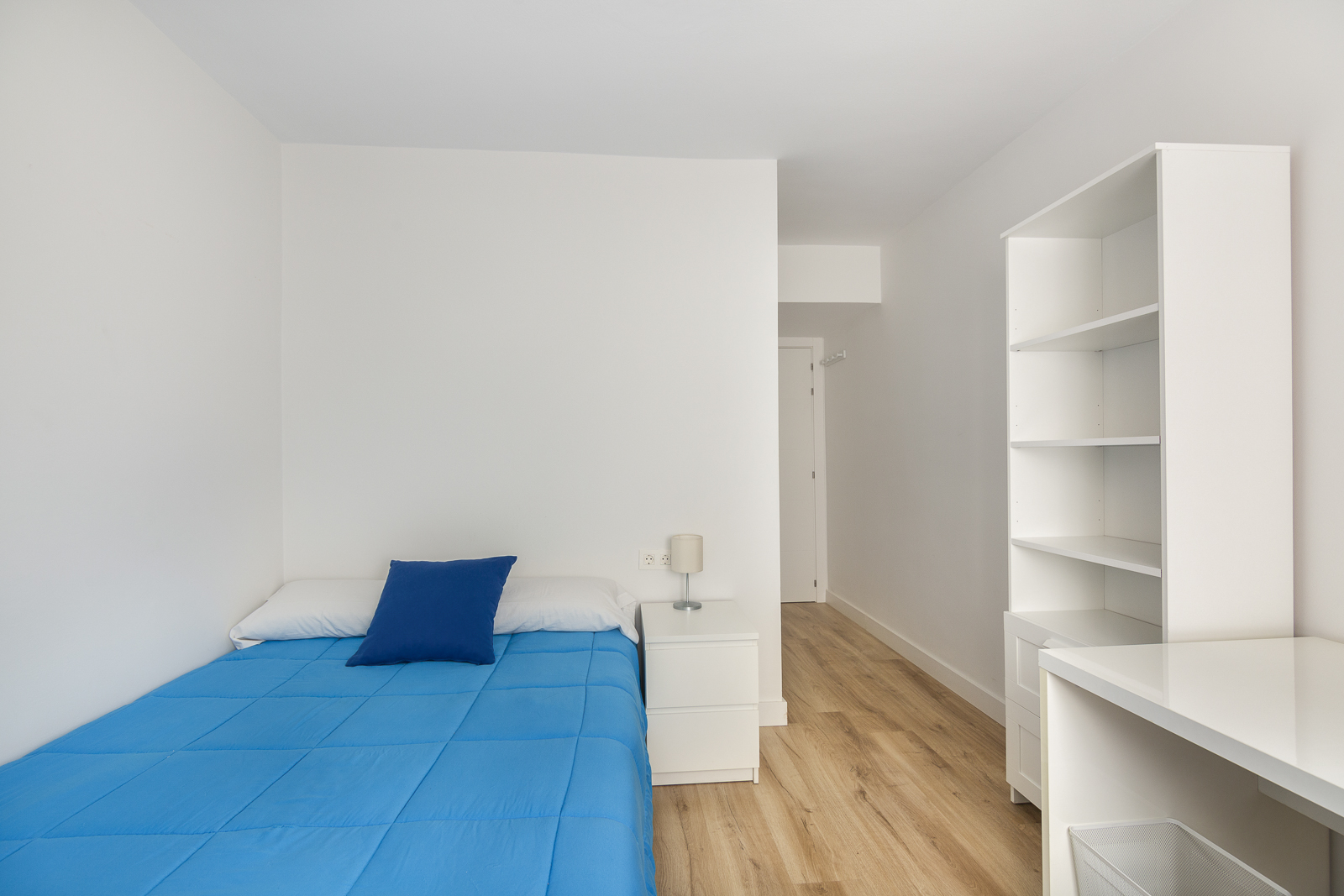 Todas las habitaciones disponen de mobiliario perfectamente adaptado al estudio: mesa grande de estudio, silla ergonómica, flexo con bombilla led de gran luminosidad, corcho para apuntes, estantería para almacenaje de libros, y también un armario de tres puertas, una cómoda, mesita, y papelera. Dispone de dos camas dobles de 1,35cm y una cama individual de 1,05cm. También proporcionamos ropa de cama y un juego de toallas.