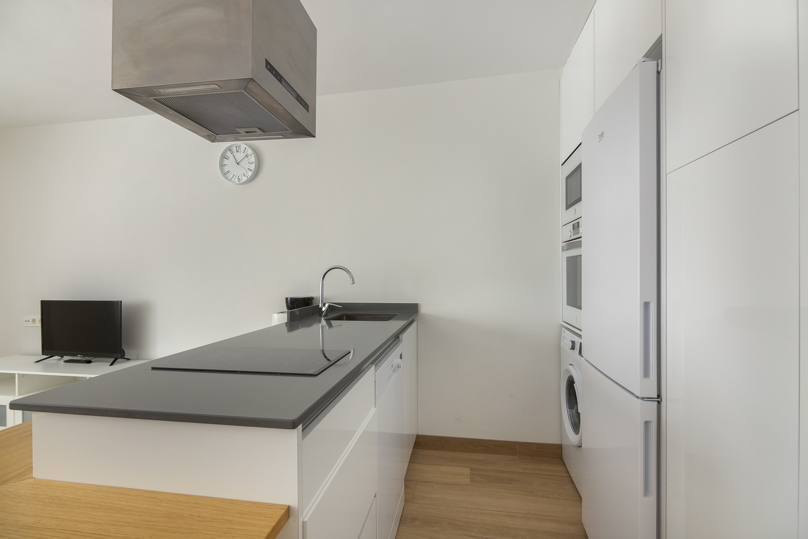 La cocina está equipada con un menaje básico del hogar, y cuenta con nevera, lavavajillas, lavadora, horno, microondas, campana extractora, vitrocerámica digital, cafetera y tostadora. En el salón, una smart tv de pantalla plana para los momentos de relax.