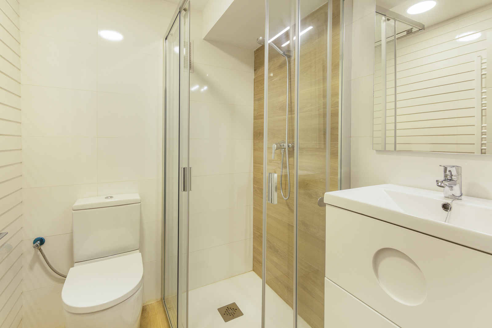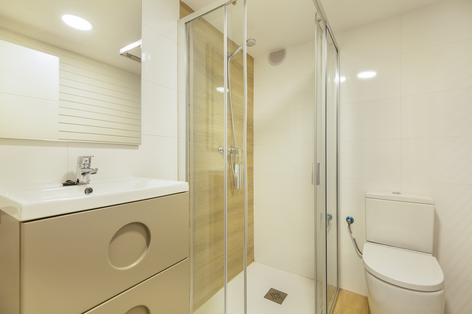 Los cuartos de baño están equipados con plato de ducha cerámico y mampara corredera, lavabo, wc, toallero calefactable y secador de pelo.