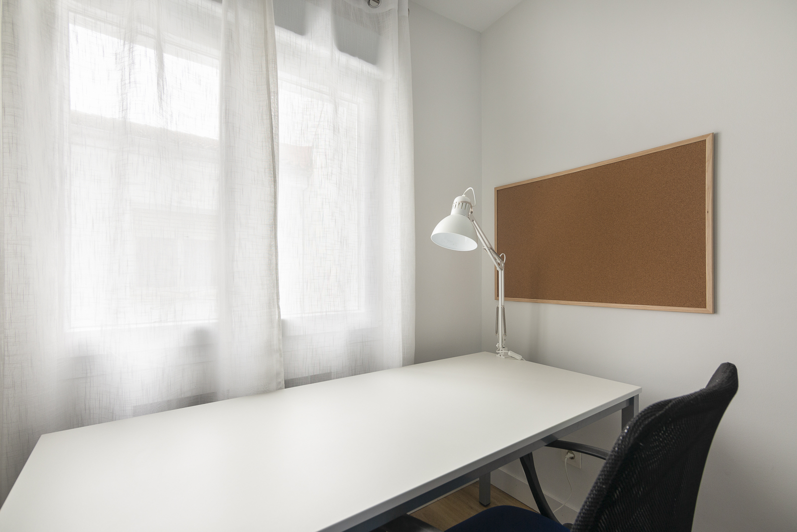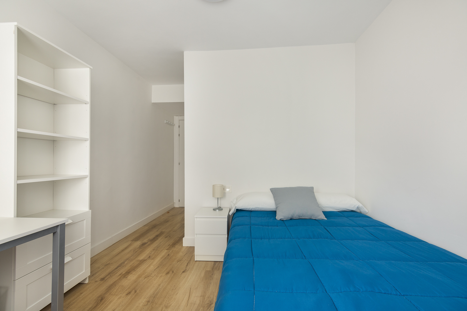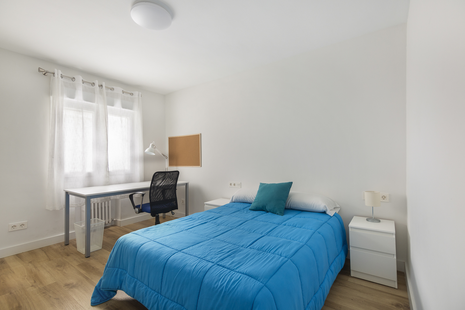 Todas las habitaciones disponen de mobiliario perfectamente adaptado al estudio: mesa grande de estudio, silla ergonómica, flexo con bombilla led de gran luminosidad, corcho para apuntes, estantería para almacenaje de libros, y también un armario de tres puertas, una cómoda, mesita, y papelera. Dispone de dos camas dobles de 1,35cm y una cama individual de 1,05cm. También proporcionamos ropa de cama y un juego de toallas.