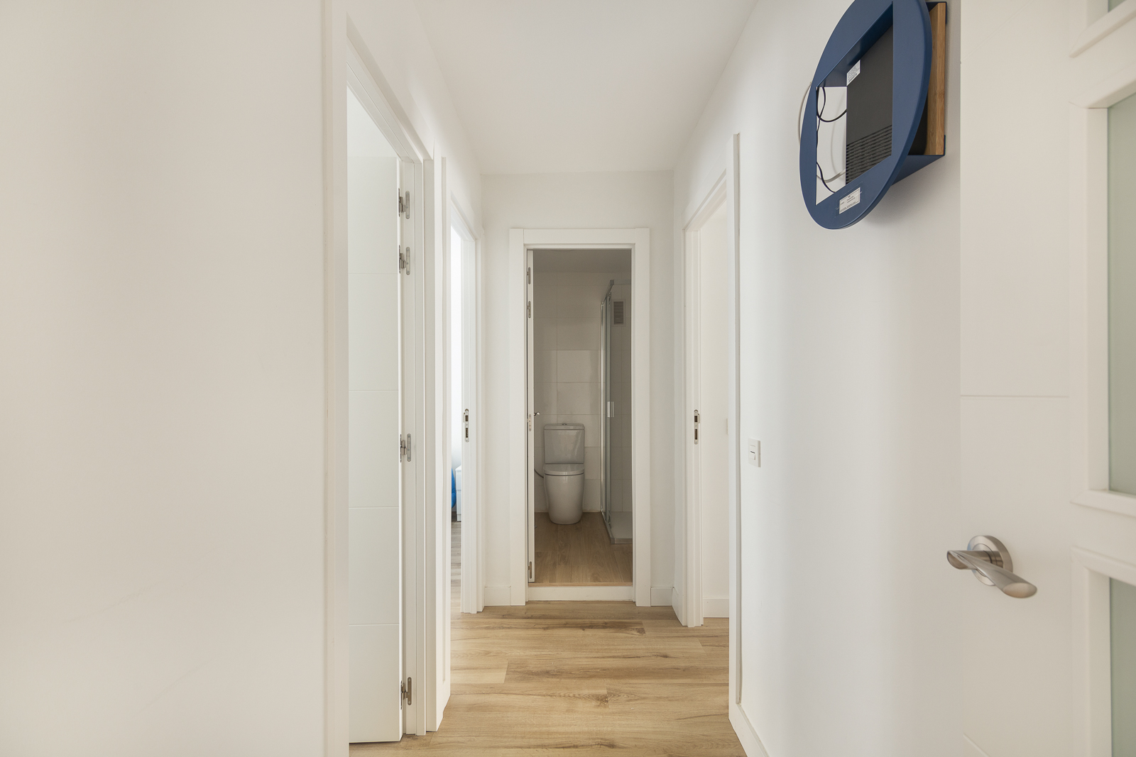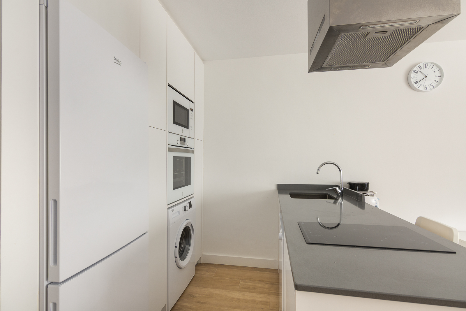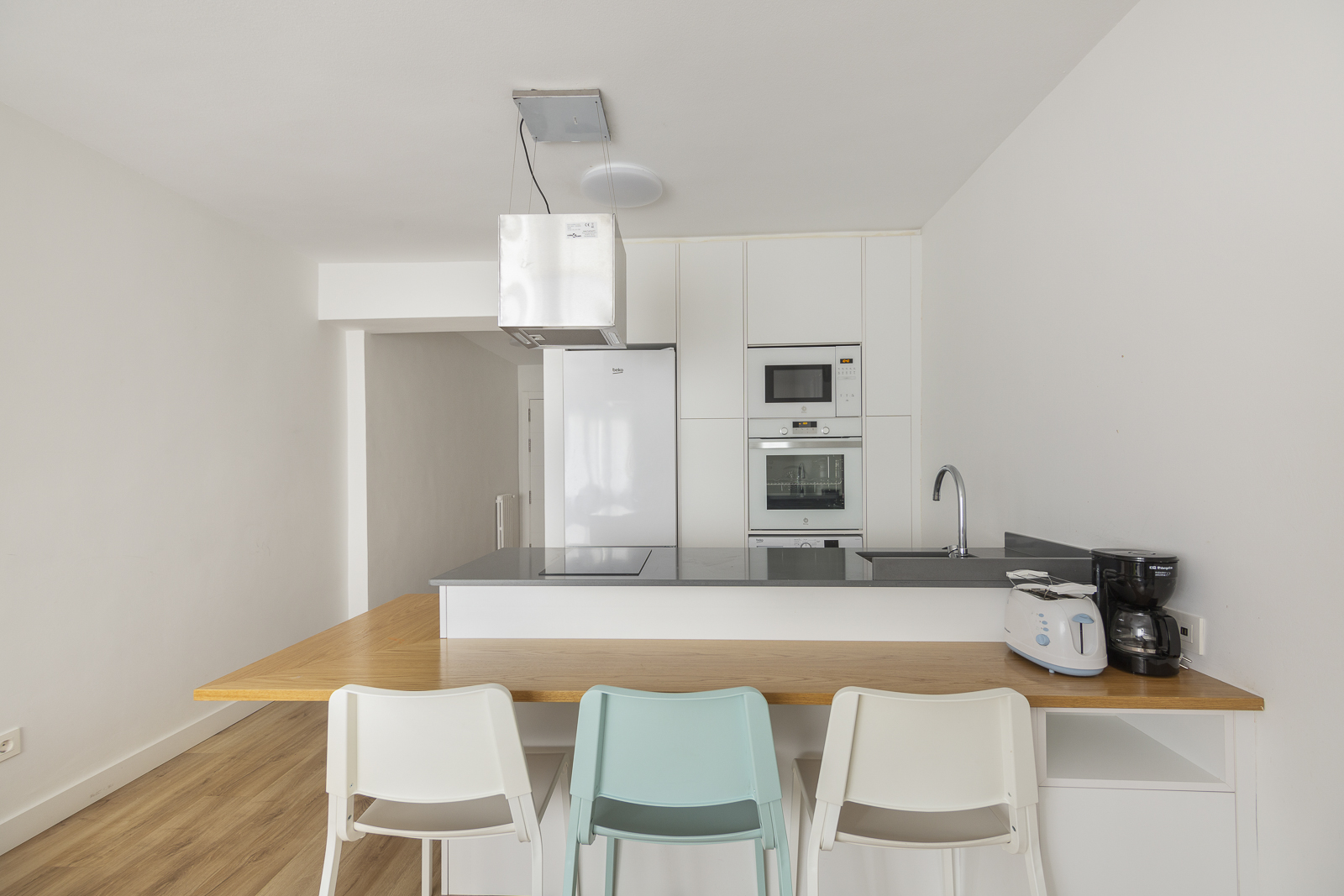 La cocina está equipada con un menaje básico del hogar, y cuenta con nevera, lavavajillas, lavadora, horno, microondas, campana extractora, vitrocerámica digital, cafetera y tostadora. En el salón, una smart tv de pantalla plana para los momentos de relax.
