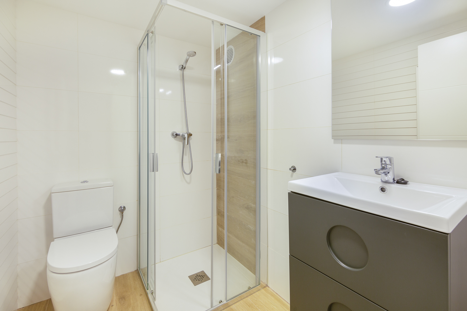 Los cuartos de baño están equipados con plato de ducha cerámico y mampara corredera, lavabo, wc, toallero calefactable y secador de pelo.