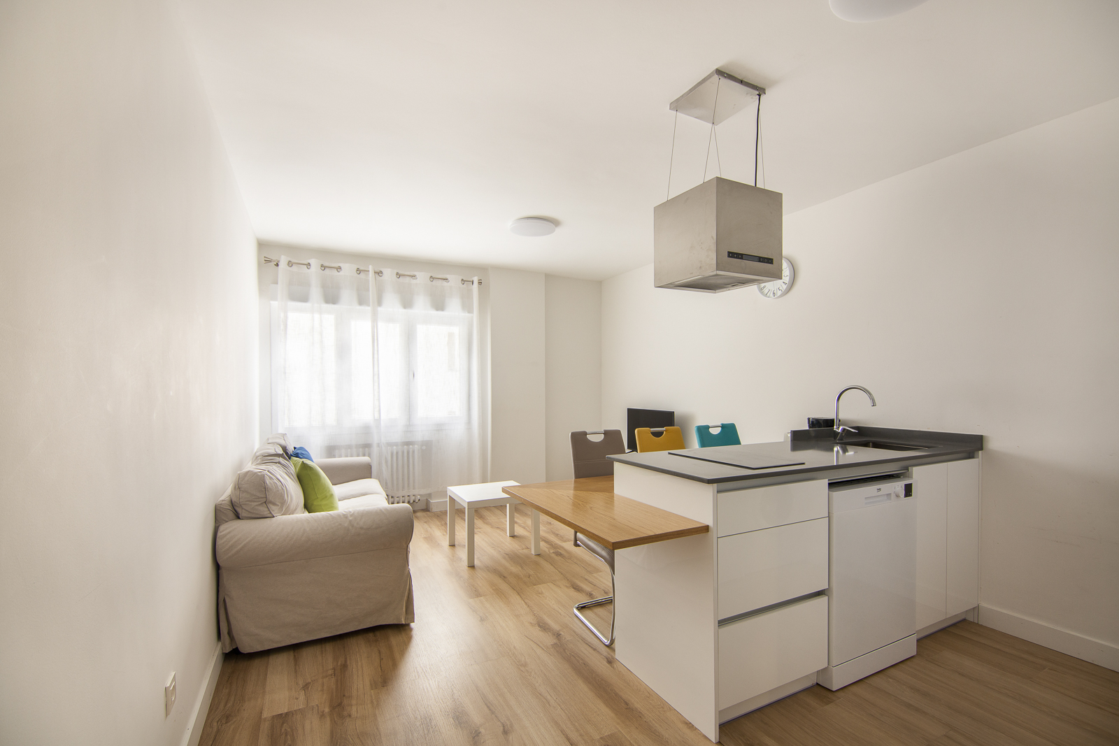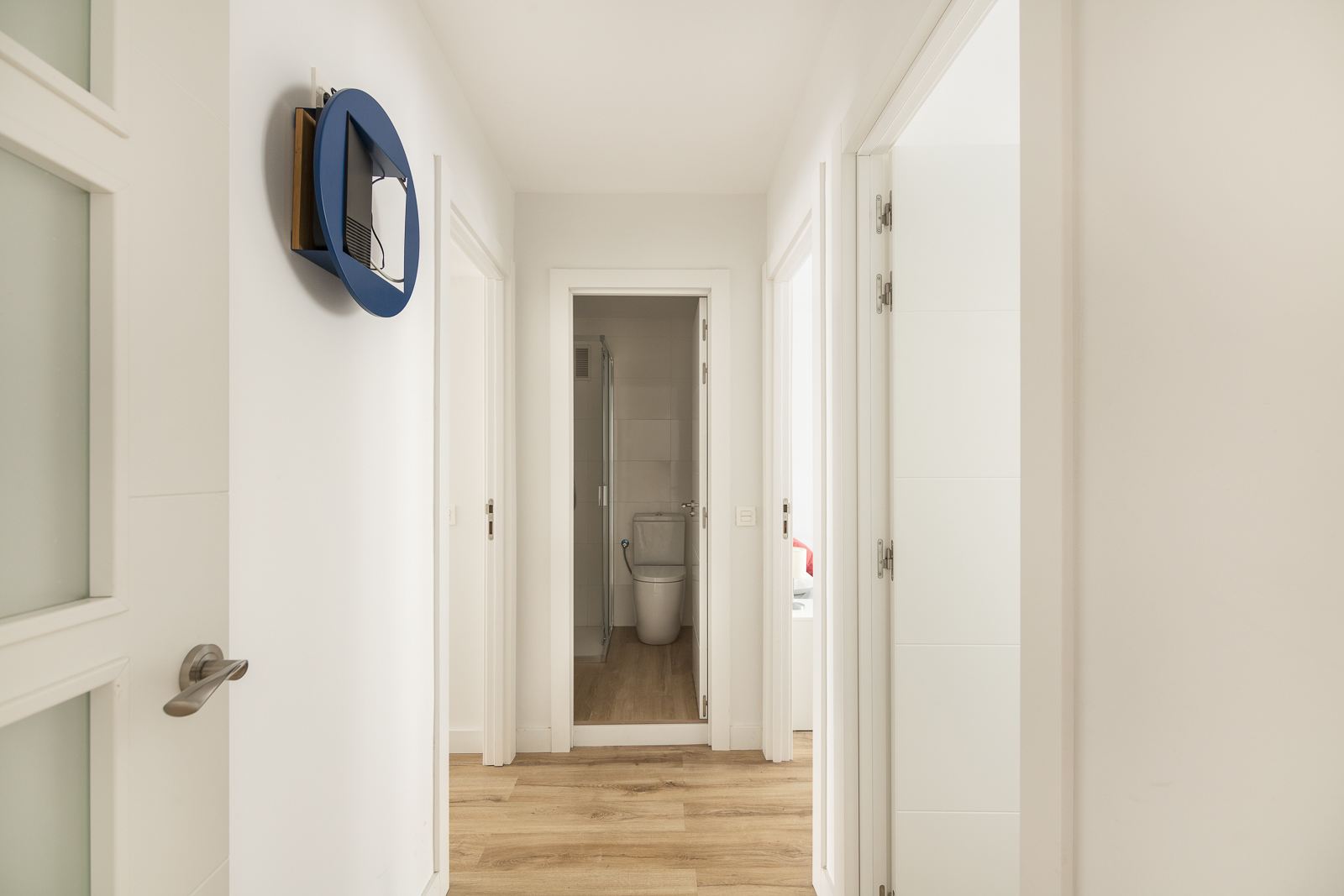 Piso completamente reformado. Salón-cocina moderna con isla central y cocina totalmente equipada. Una habitación con baño privado y otras dos con otro baño para compartir en el pasillo. Tarima flotante en todo el piso, puertas lacadas en blanco con llave en cada habitación para asegurar la intimidad de cada alojado, ventanas de pvc de doble acristalamiento con persiana en cada estancia. Piso totalmente acondicionado para la vida de estudiante.