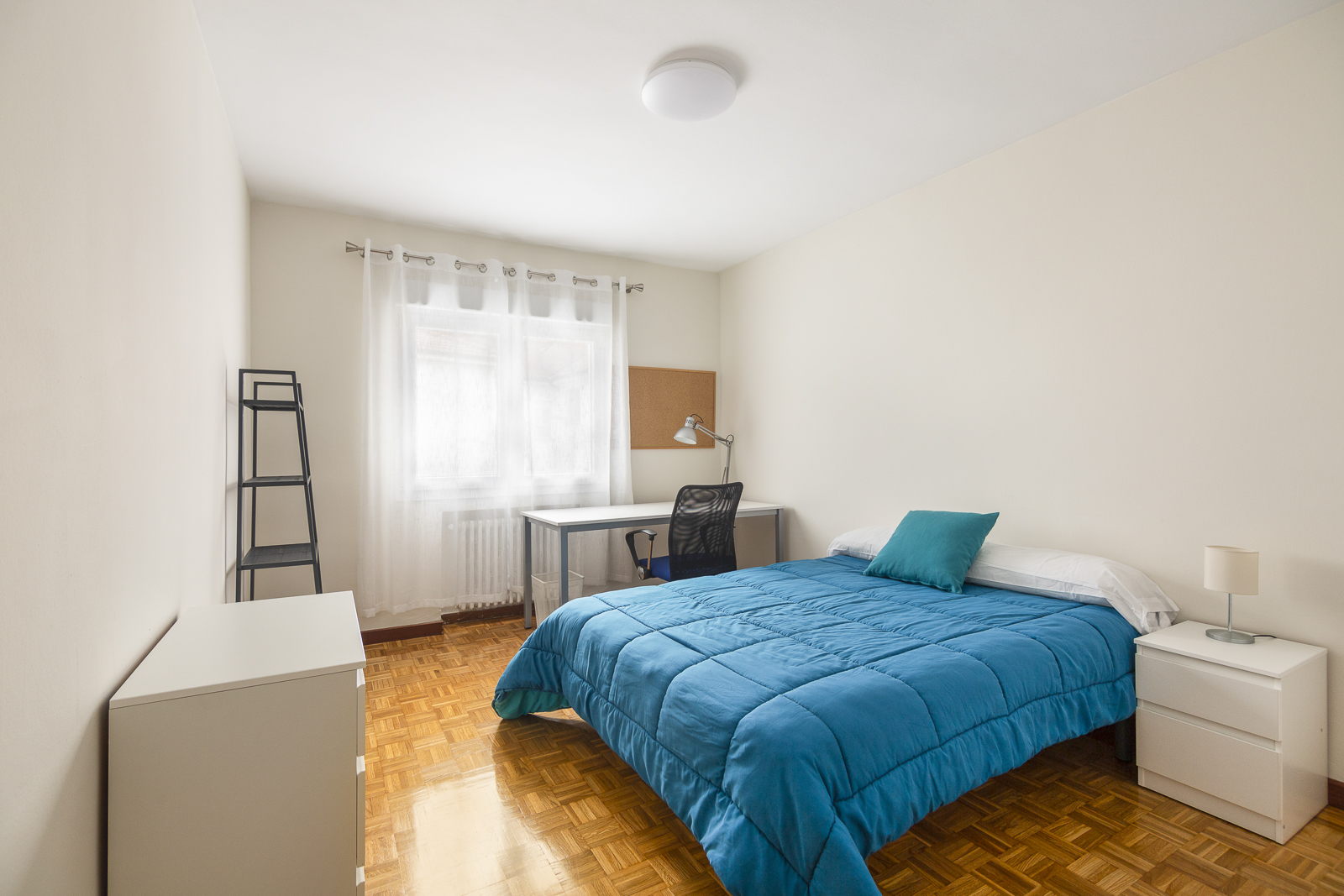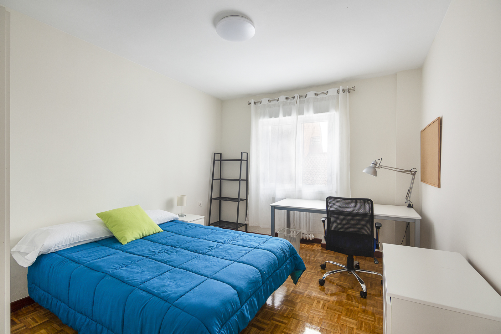 Las habitaciones disponen de mobiliario perfectamente adaptado al estudio: mesa grande de estudio, silla ergonómica, flexo con bombilla led de gran luminosidad, corcho para apuntes, estantería para almacenaje de libros, y también un armario de tres puertas, una cómoda, mesita, y papelera. Cada habitación cuenta con una cama doble de 1,35cm. También proporcionamos ropa de cama y un juego de toallas.